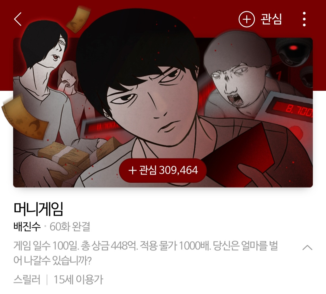 줄거리: 웹툰 ‘머니게임’과 ‘파이게임’ 두 작품을 기반으로 새롭게 각색한 8부작 드라마로, 단절된 공간 속 사망자가 나오면 게임이 종료되는 설정 속에서 참가자 8인이 협력과 반목을 거듭하는 이야기